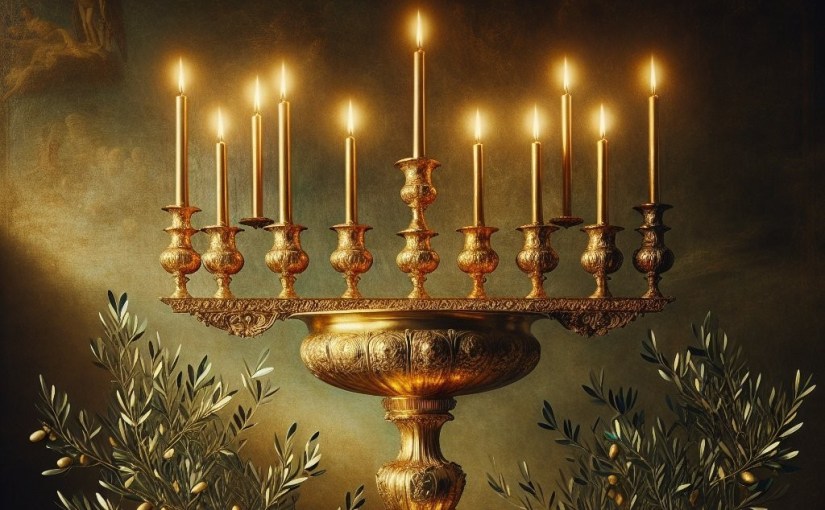 I am doing a bible study of the Old Testament and I had an exciting revelation yesterday about the gold lampstand, first mentioned in Exodus Chapter 25:31-40.  Evidently this is the ‘menorah’ in Hebrew, and a national symbol of Israel.