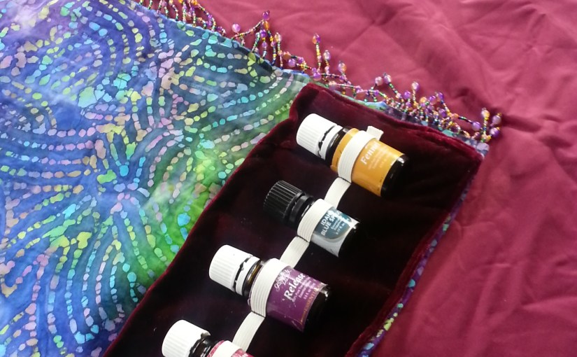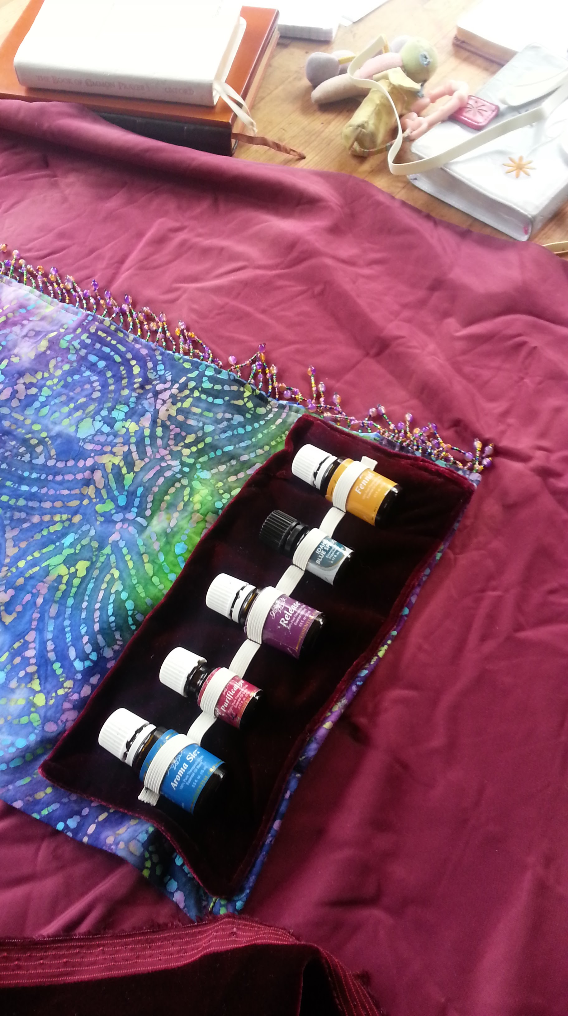 Finally needed a better way to transport my oils, since I take them everywhere with me. Using some fabric I found laying around.