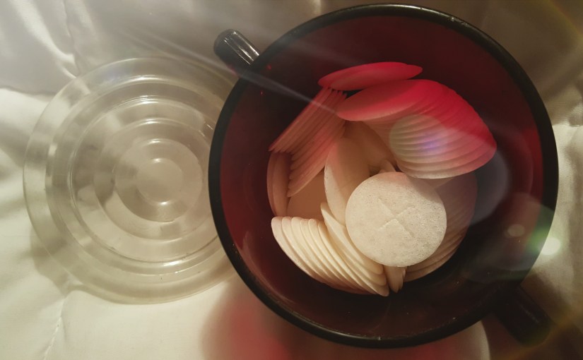 Nuns are called to be silent after evening prayers through nighttime until after communion with Jesus in the morning, so that they will be ever more ready to accept his body into them. Since I often talk aloud at night and in the morning, I feel called to put this into practice. I also take morning communion with my unleavened wafer as I recite the Lord’s Prayer, adjuring Jesus to make me more like Him.