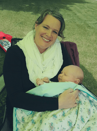 My deadline of 36-plus weeks arrived, and I was on my feet at last. A week and a half later I went into labor. I woke up Rick by yelling “The baby is coming!” By that point, I was in late labor. Needless to say, we rushed to the midwife. When we arrived I was having pretty heavy contractions with pushing and was being very vocal. Poor Rick!